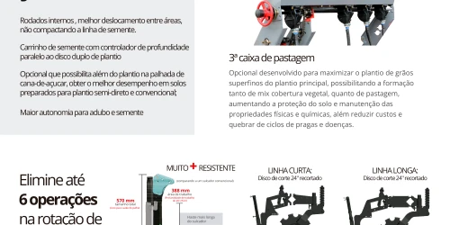 Opcional que possibilita além do plantio na palhada de cana-de-açucar, obter o melhor desempenho em solos preparados para plantio semi-direto e convencional.