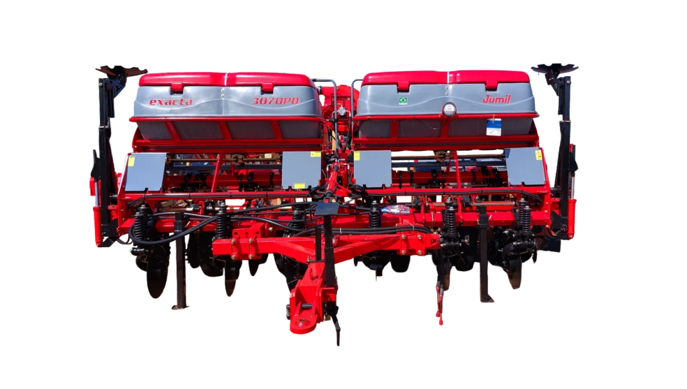 Versatilidade de trabalho: Plantadora adubadora de plantio direto, por sistema de arrasto, com vários recursos e regulagens, para as diversas situações de trabalho.