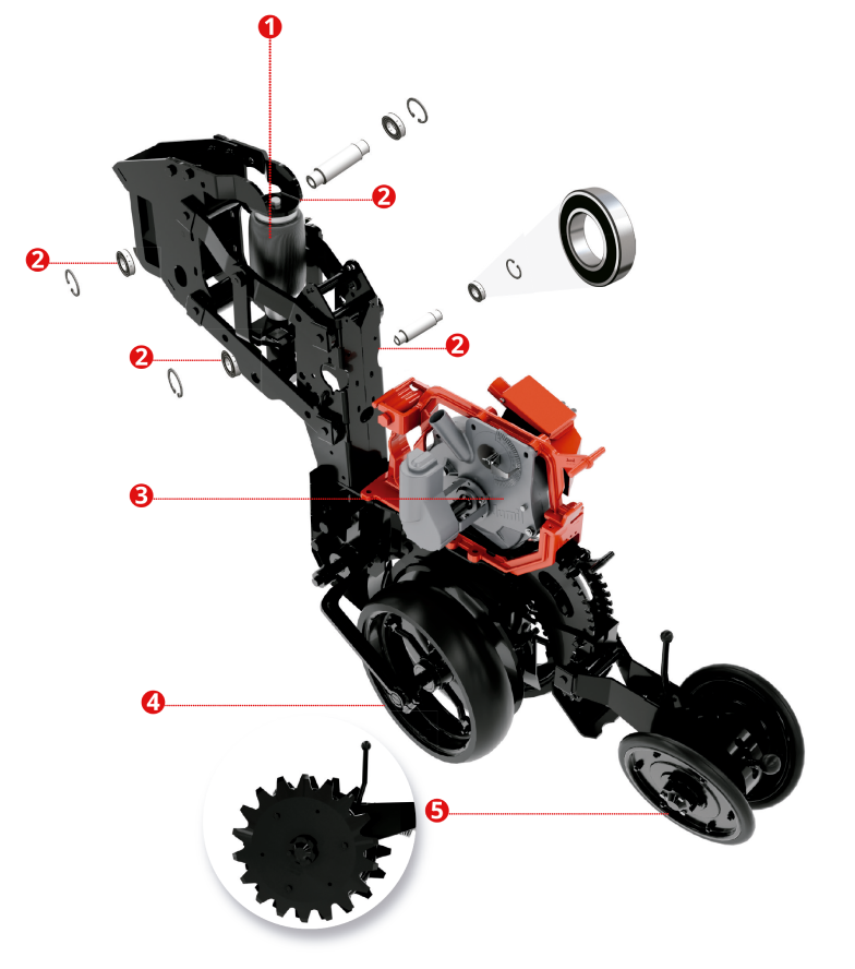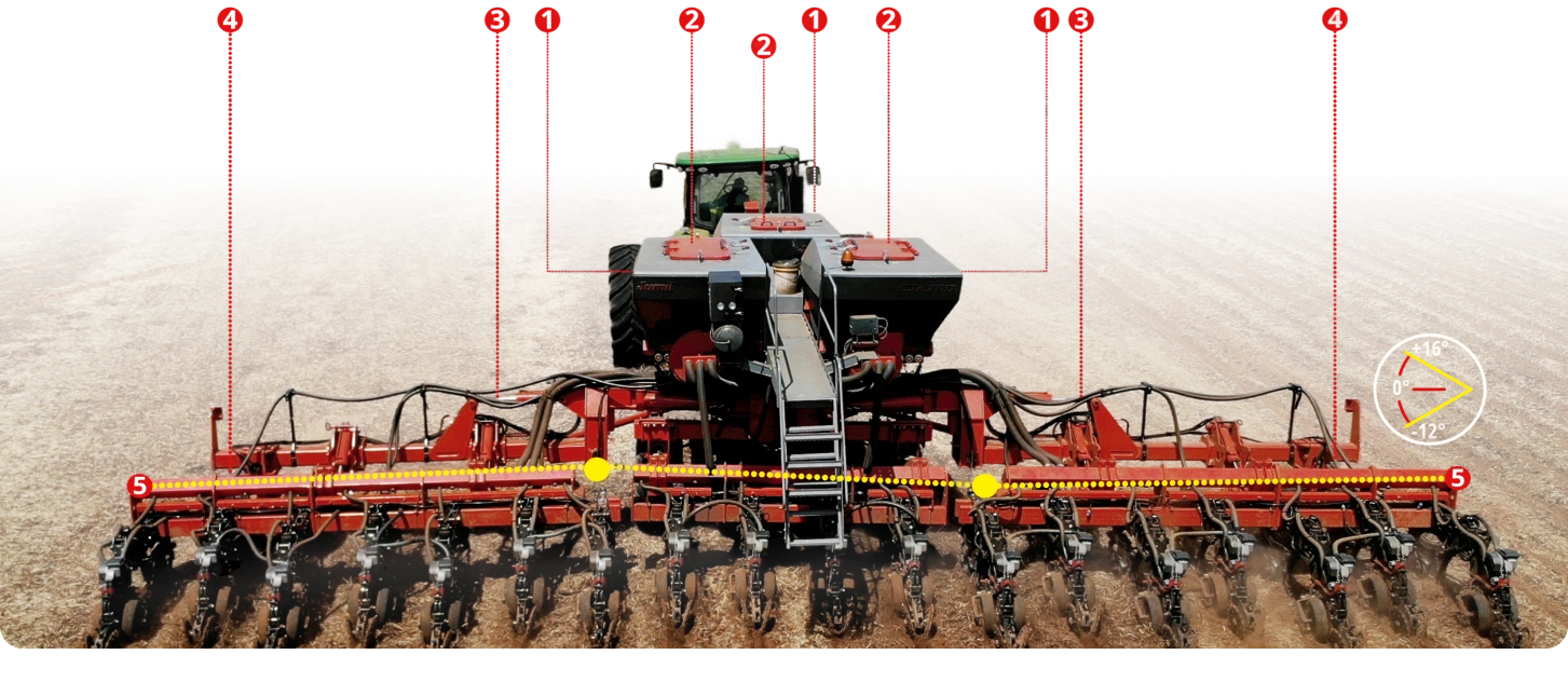 Disponível em versões de 19 a 33 linhas com possibilidade de espaçamentos a partir de 38 cm, proporciona versatilidade e adaptabilidade às diversas condições de plantio. Conta um exclusivo sistema de distribuição de peso do centro para as laterais, possibilitando o corte de palha uniforme e mantendo pressão constante da unidade semeadora ao solo.