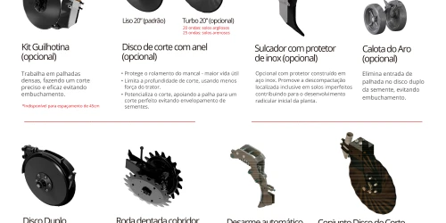 Excelente capacidade de corte: Discos de corte de 20" oferecendo maior agilidade no plantio e capacidade de corte superior ao da concorrência.