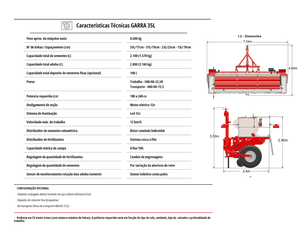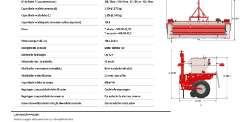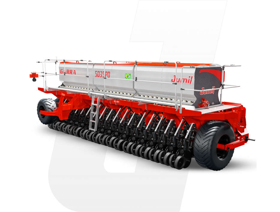 Representa um salto significativo no plantio direto de grãos de inverno, plantas de cobertura e também no plantio de adubo. Equipada com 35 linhas de 17cm, essa máquina oferece uma combinação perfeita entre robustez, precisão e alta tecnologia. Os rodados de alta flutuação (550/60-22,5”) garantem a mobilidade necessária sem compactar o solo, enquanto o deposito reforçado em aço inox oferece maior resistência e durabilidade.